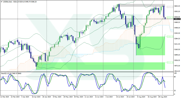 ومن وجهة نظر أعمق تراجع مؤشرS&P 500 عن مستوى المقاومة 5670 ومن المرجح أن يعيد اختبار مستوى الدعم المكسور حديثا 5550 قبل استئناف التصحيح الهبوطي العميق، كما يعتبر تراجع مؤشرS&P 500 مؤخرًا من مستوى المقاومة القوي 5670 الذي أوقف موجة الاندفاع السابقة 1 في منتصف تموزيوليو والذي يقع بالقرب من النطاق العلوي اليومي لمؤشر بولينجرباندز اشارة ضعف قوية لأنه أوقف الموجات الدافعة رقم 3 السابقةفي نموذج اليوت على الرسم البياني اليومي.